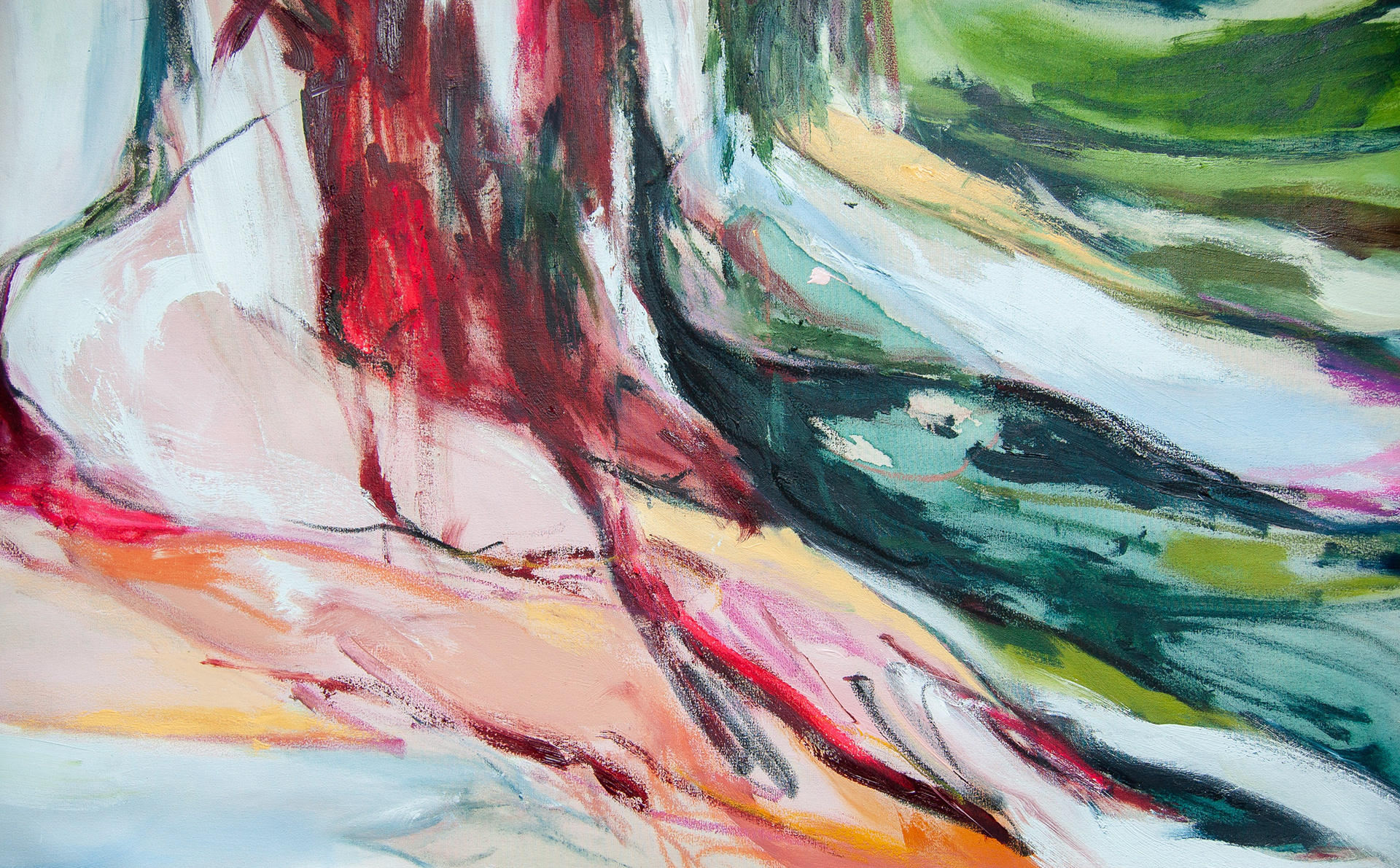 acrylic, oil, oil stick and oil pastel on canvas